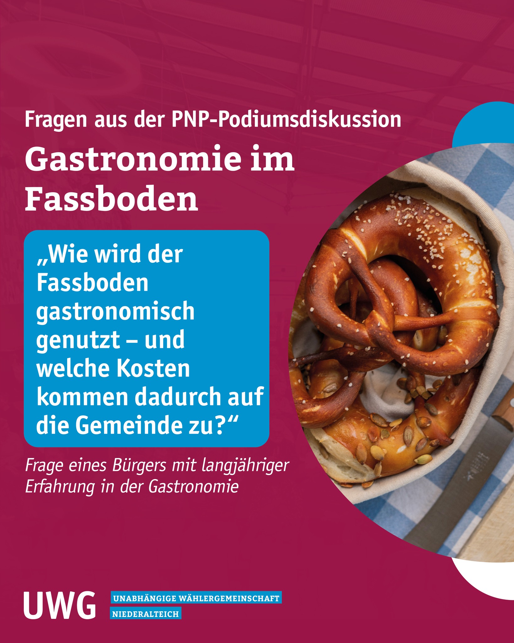 Mit der anstehenden Kommunalwahl stehen für alle Niederalteicher wichtige Entscheidungen an, die über die Geschicke der Gemeinde in den folgenden 6 Jahren bestimmen. Es ist an uns, die Unabhängige Wähler-Gemeinschaft Niederalteich im Dorf zu vertreten, eine starke Liste aufzustellen und alle diejenigen zu aktivieren, die sich für die Entwicklung unseres schönen Dorfes interessieren und einbringen wollen.